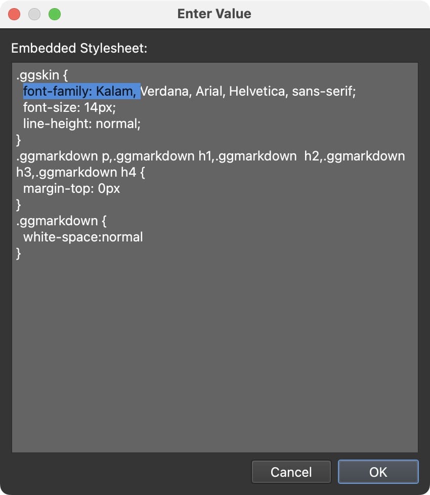 Kalam font added as part of the default style in the Embedded Stylesheet.