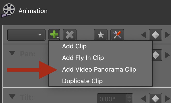 - Add a Video Panorama Clip. Long press the Add Clip button and choose, Add Video Panorama Clip.
