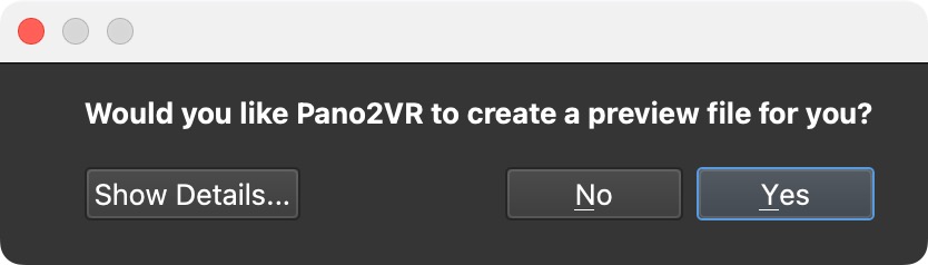 Create preview file? You’ll be asked if you want Pano2VR to create a preview of the video for you. If you choose yes, Pano2VR will create a preview file that will be used in the panorama player as a poster image before the video is started. This way, if the video is not fully loaded, at least there is something there and not a black “hole”. If you’ve chosen to create a preview file, name that file and select a location for it.