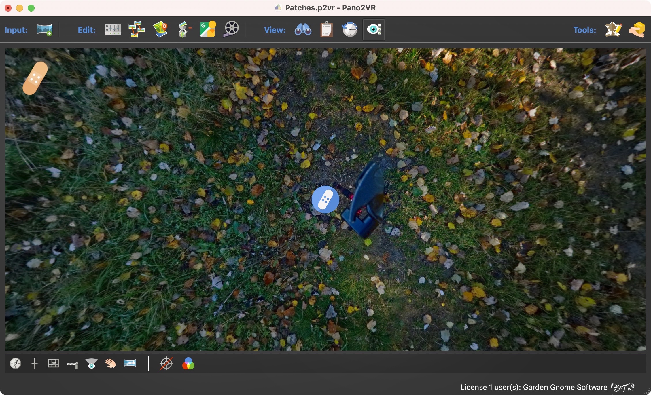 Double-click in the viewer to add a Patch. You’ll see the patch icon will appear and its properties panel will open. A red icon means the patch is active/selected, while a blue icon means it is not active. More on adding patches.