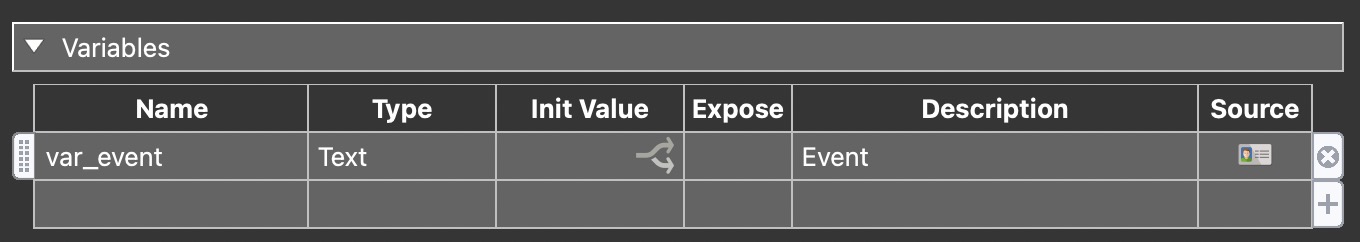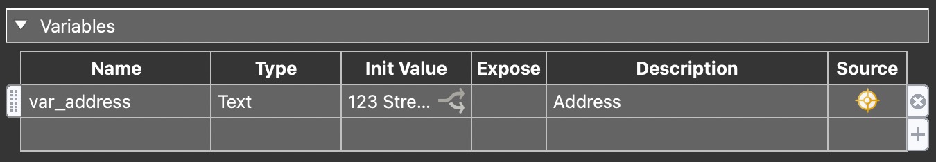 - Choose the variable source. After adding a variable or more in the skin’s variables table, click in the Source column and choose User Data or Hotspot as the source.