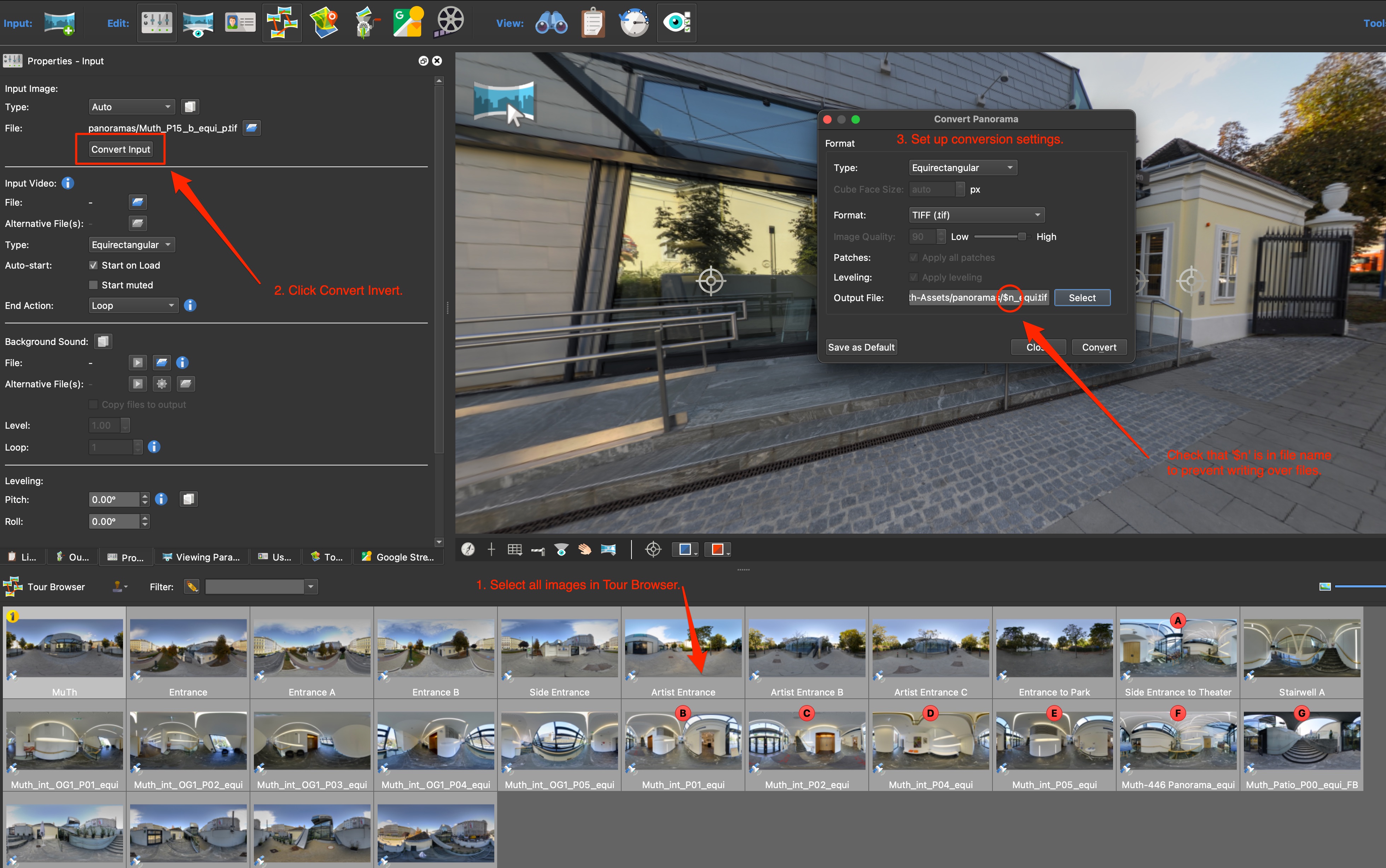- Select all the images in the Tour Browser (Command-A/Control-A).