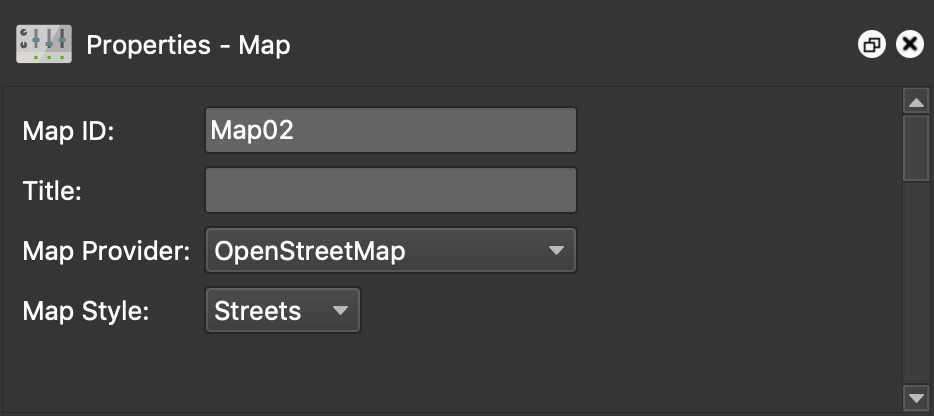 3. In the Properties panel, choose a map provider. Settings for the particular map will then appear.