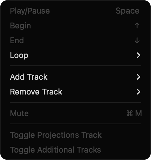 Toggle Projections Track – Hides or shows the projection track in the timeline.