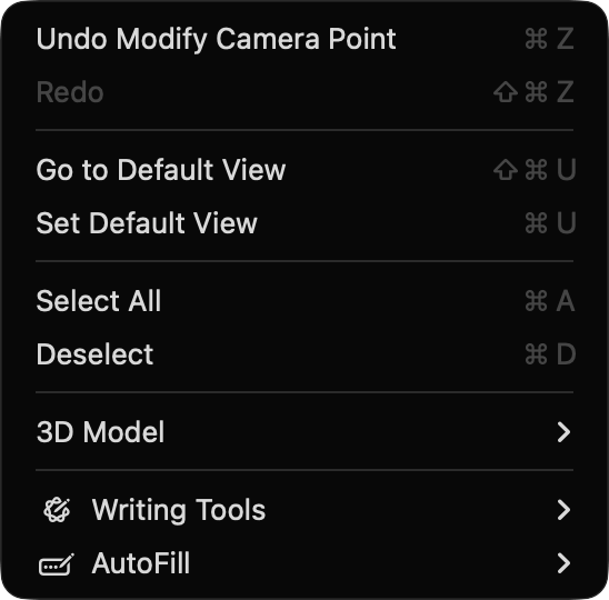 Orbit – Move around the model as if it were floating in front of you. You can rotate the view, zoom in and out, and explore the model from any angle. Dragging with the middle mouse button pressed, or the left mouse button while simultaneously holding the Option/Alt key, lets you pan the model.