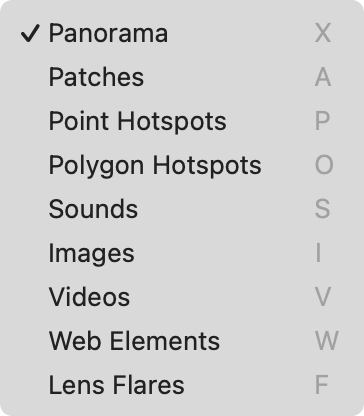 List View – Opens a List View of all the elements added to the panorama.