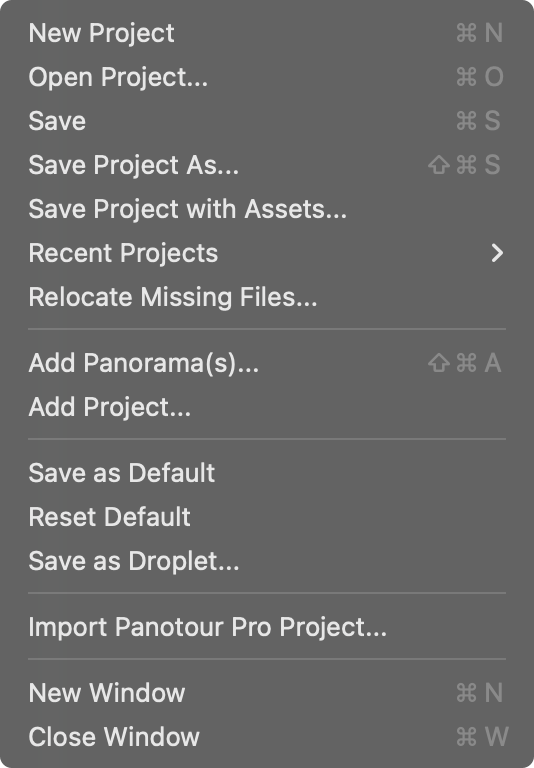 Add Project – Select to add a Pano2VR project file (.p2vr) to the current project. Custom maps and floor plans will also be added along with all node settings.