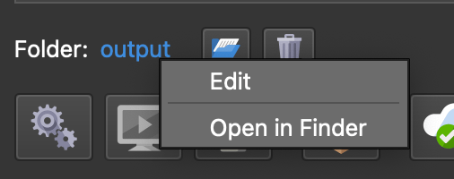 Right-click the folder name to rename the output folder. Output Folder name context menu
