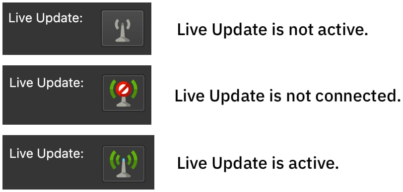 Toggle Live Update – Turn Live Update on or off.