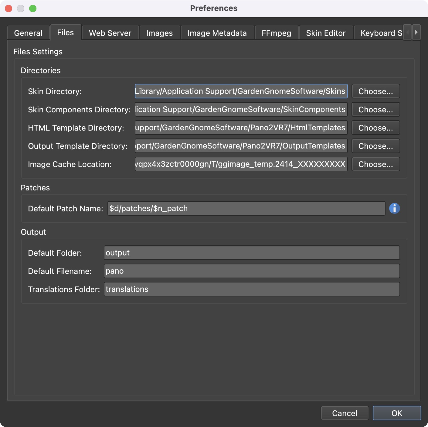 This section provides directory information. Click Choose to change where the following files should be stored. Right-click in the file path to open the folder in Finder or Explorer.