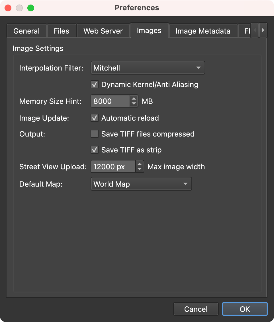 Interpolation Filter – Select the filter that is used for remapping operations. The different filters can sharpen or blur the image. Mitchell is selected by default.