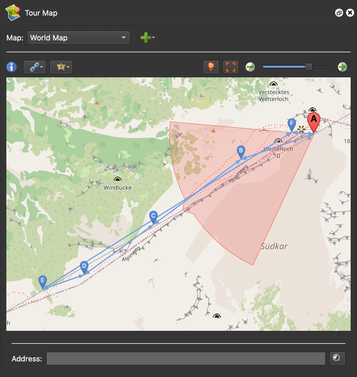 Show All Links – Select this option to show all the links between nodes. Links are the blue lines between map markers. If not selected, only links to and from the currently active node are shown.