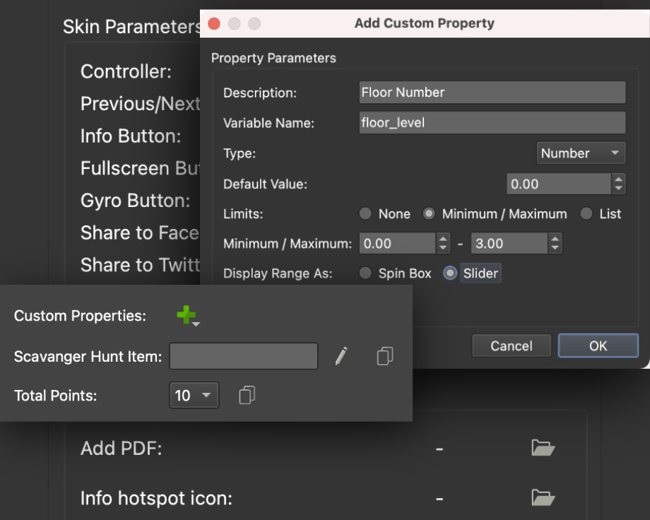 There are new options for exposing variables so you can provide UI elements like selections, sliders, and radio buttons to the custom properties.